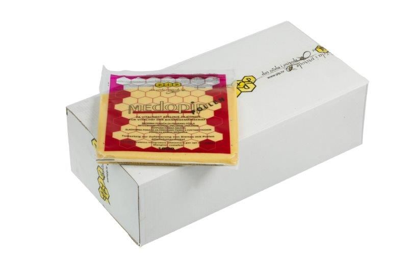 The new Medopip Pollen sugar beefeed contains added pollen, which boosts the vitality of bees and the queen, and supports the faster development of the bee colony.