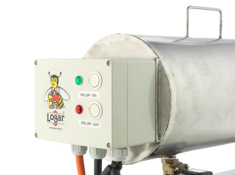 A portable 6 kW steam generator is specifically designed for beekeeping purposes, such as melting old combs in larger wax melters and for melting old combs through the centrifugation process. The evaporator can start producing steam in just about 4 minutes after starting. When the water in the heating reservoir is already hot, a powerful heater enables steam production within seconds. Once a sufficiently high temperature is reached in the container, the wax melts and flows out. Due to the rapid steam...