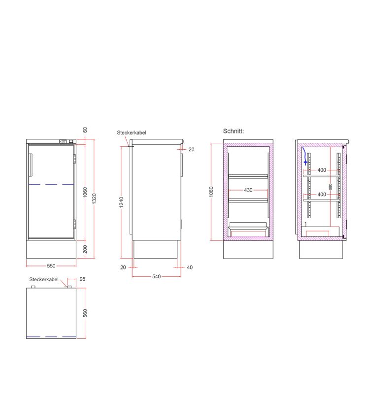 External dimensions (W x D x H): 55 x 58 x 132 cm